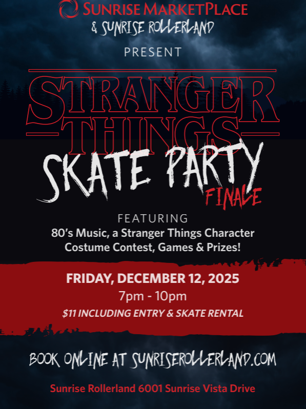 Find out moreStranger Things Finale Skate Party! 🛼 Join us for a totally tubular night filled with 80’s music, skating, and Stranger Things fun! 👾 Character Costume Contest – come dressed as your favorite Stranger Things character for a chance to win awesome prizes! 🎶 Dance, skate, and celebrate the finale in true Hawkins style. 🎟️ $11